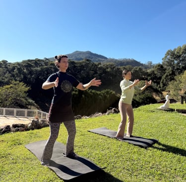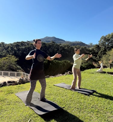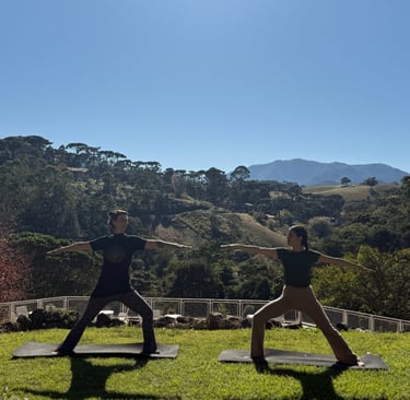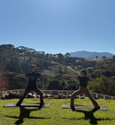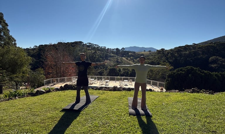 Aqui, a natureza é mestra: cada luz que atravessa as árvores, cada som do vento e cada tom do céu nos ensina a desacelerar e a perceber que tudo já está bem, exatamente como é.